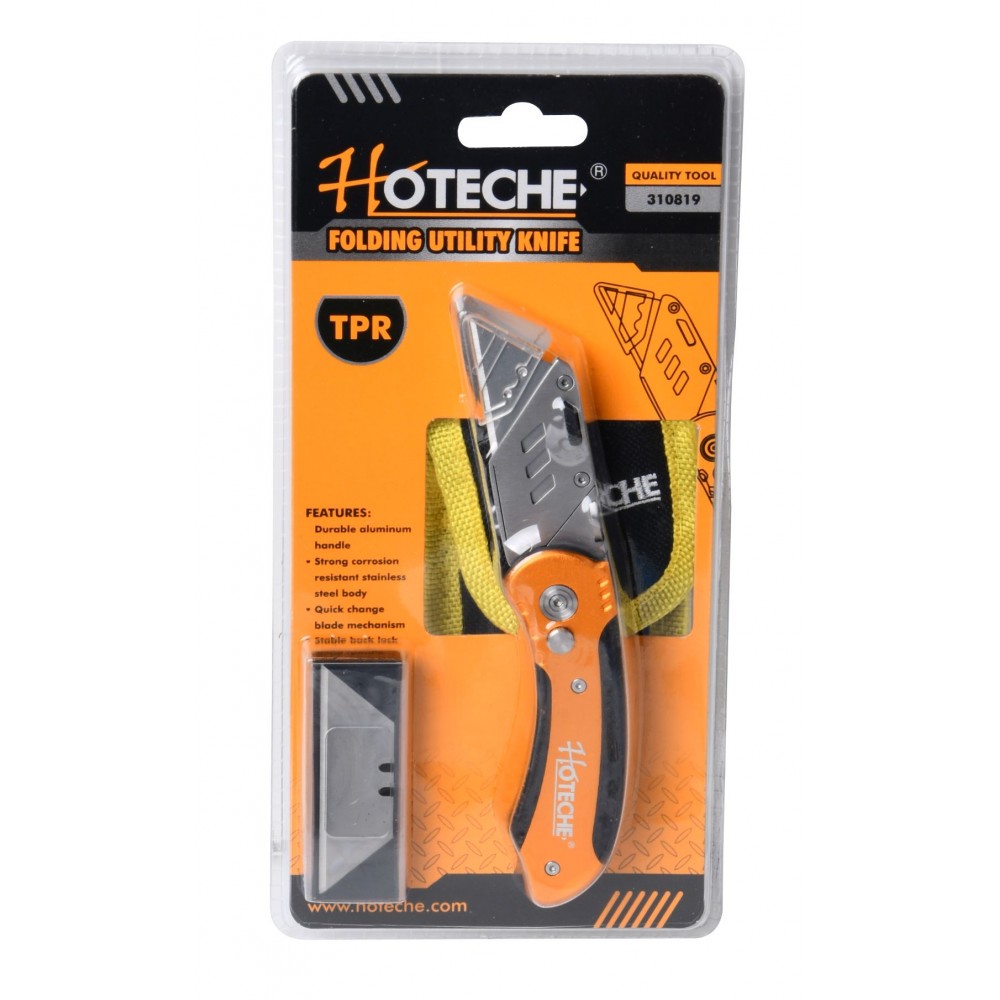 Cuchillo utilitario plegable Material: aleación de aluminio con Tpr Hoja de cambio rápido Sk5 Balde Bloqueo de respaldo estable Con cuchilla Sk5 reemplazable de 5 piezas Bolsa de tela Oxford.