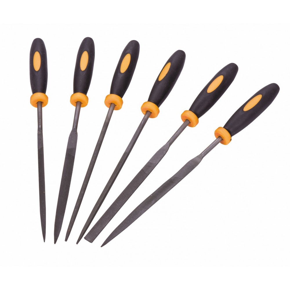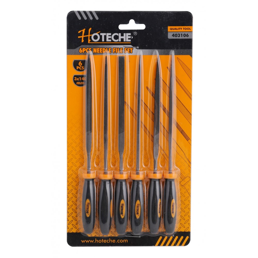 Juego de limas de aguja de 6 piezas Material: rodamiento de bolas de acero, Sandy terminado, Tamaño: 3Mmx140Mm Mango Pp + Tpr